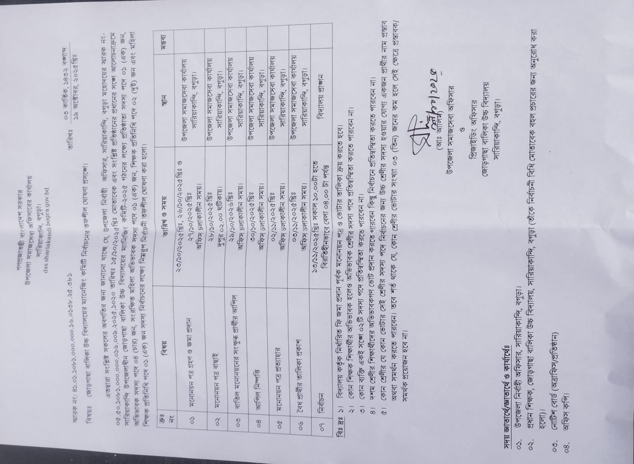 ম্যানেজিং কমিটির নির্বাচনী তফশীল